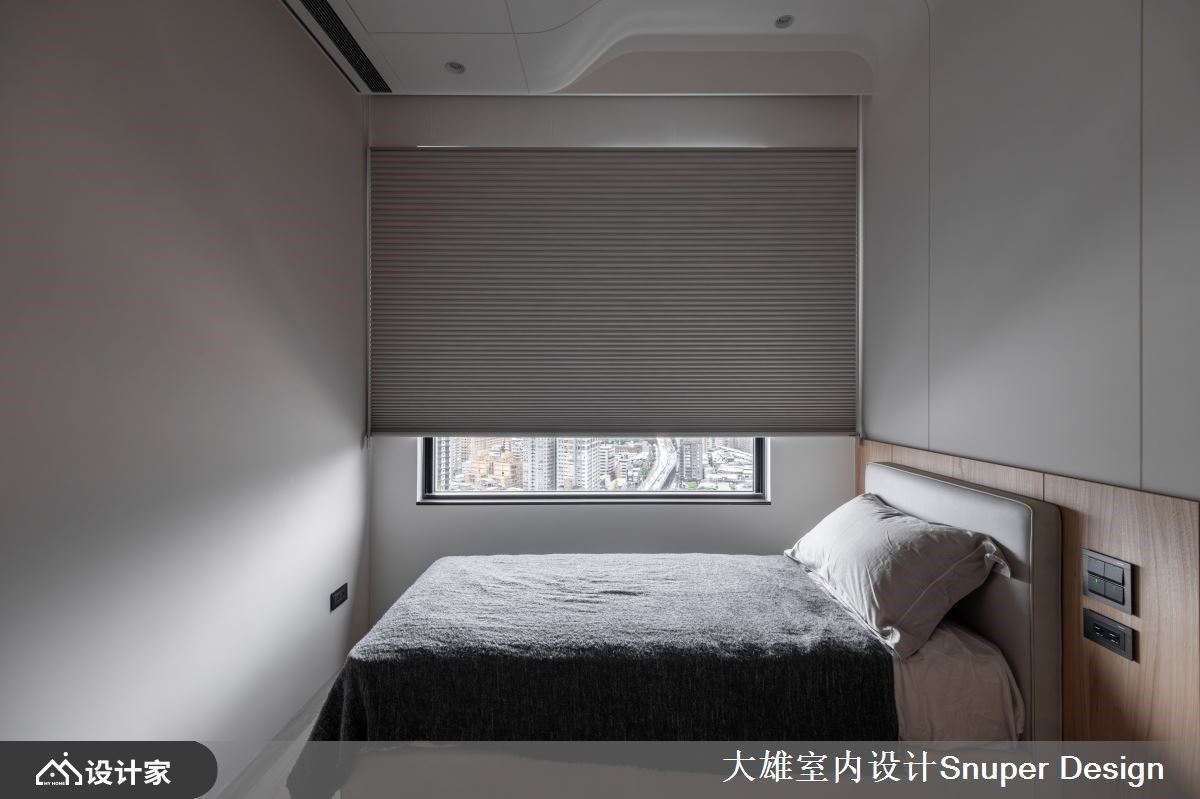 位于建物顶层,屋主坐拥全栋最佳视野。设计师选择直立丝柔百叶窗帘替代一般落地窗帘,能随光影变化调整角度,甚至可从帘片之间直接穿越,光影得以流泻一室,让室内外视野相互交融。成就在都市之上的生活态度展现,即便居住都市仍能自在惬意地拥抱自然。