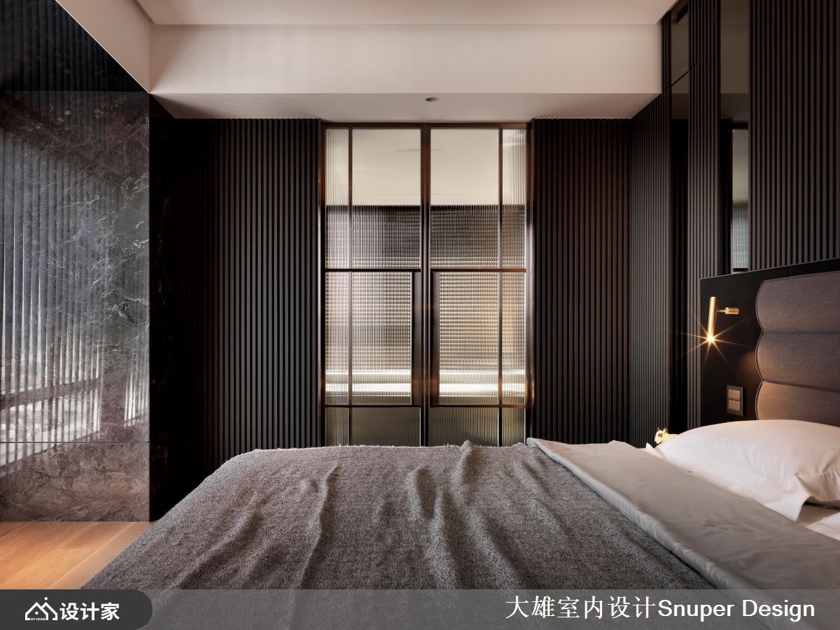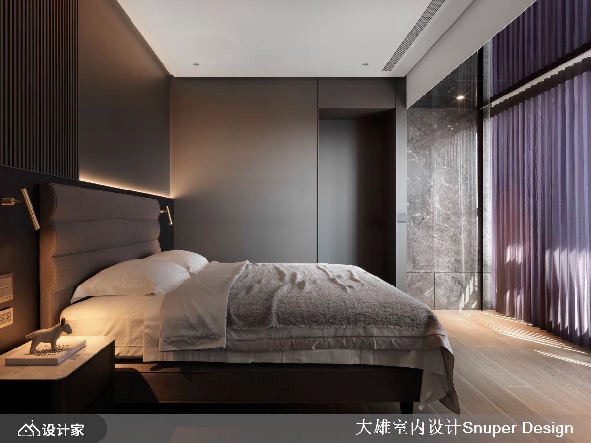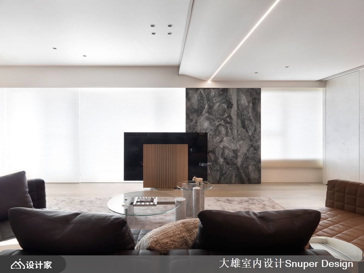 当事业版图跨越国界,世界各地的繁华在眼底逐一褪去,对于长年往返国际的企业家而言,所谓的奢华不再是材料的堆砌,而是一种能让心灵缓缓停靠的从容。这间位于市中心绿道旁的 172 平方米毛坯房,便是这份惬意的最终载体。 步入玄关,抹如女性高跟鞋后跟般的优雅曲线收边,为归家仪式注入了柔性力量,特殊漆与金属的交织,预告了空间的不凡质感。设计师大胆打破原始格局,将空间精炼为两室两厅,为夫妻与成年子女打造出前所未有的开阔尺度。最令人惊叹的莫过于吊顶的轴线转折,优雅曲线修饰了建筑梁柱,并以 45 度斜切延伸,使客餐厅形成如抛物线般的动态美。坐在厅区,都市轮廓与远山风景仿佛被延揽入室,空间层次随光影自然流动。 细品室内,每一处材质的运用都诉说著国际视野。客厅主墙选用意大利 Salvatori 卡拉拉白大理石,细腻的质地散发出内敛的精品气息;Minotti 咖啡色沙发则以稳重之姿,呼应屋主成熟且优雅的人生阅历。一旁的深色主墙巧妙隐藏了通往主卧的动线,悬浮柜结合奢石背板,展现出极致的都市精致感。餐厨区则由 Boffi 厨具主导,在工业感与优雅间取得平衡,让烹饪成为一种时尚享受。