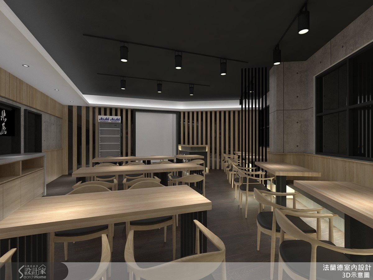 132平方米商业空间,店内以提供日式地道拉面为主轴,店主与设计师讨论空间规划及设计风格时,希望能带入日式和风的氛围,并开创出崭新